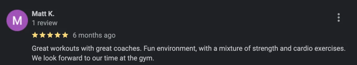 Stop guessing what exercises to do. Every session is led by a certified personal trainer who will correct your form, modify exercises for your fitness level, and push you to be your best.